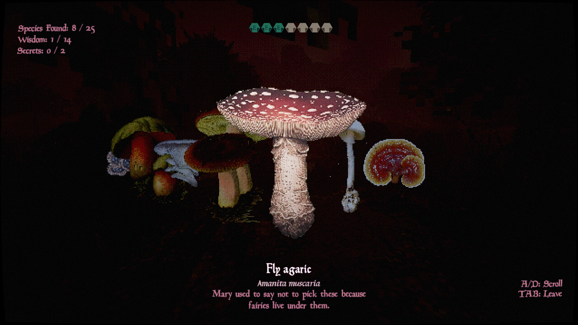 - Try to find all mushroom species and secrets!